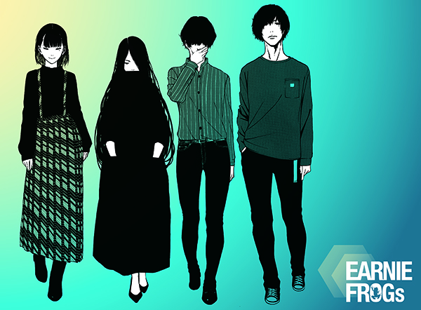 Vo./G.三木とVo./Ba.おがたの歌声を武器に活動する男女混声ツインボーカルバンド・EARNIE FROGs。YouTubeオフィシャルチャンネルのMVや数々の名曲カバー動画は、その圧倒的なクオリティとハーモニーの美しさで話題を呼び、現在チャンネルの総再生数は700万回を超える。