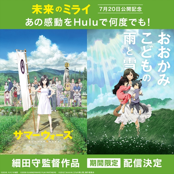 Huluで『サマーウォーズ』『おおかみこどもの雨と雪』期間限定配信 2018年06月28日 続きを読む 下記の「CTAボタン」を設定することで、ユーザーがスマートフォンで記事詳細ページを開いた際に「続きを読む」の下に「CTAボタン」を2つ追加できます。上段「CTAボタン」に設定したものは上に表示、下段「CTAボタン」に設定したものは下に表示されます。 2026冬ドラマ最新情報まとめ2025→2026 年末年始・お正月のおすすめ特番まとめ Tweet Tweet