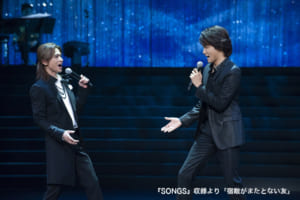 2人が共演してきた「ナイツ・テイル」からは、「騎士物語」~「兵士の重荷」~「狩猟」~「昇る太陽」~「乾杯」の5曲をスペシャルメドレーで披露。このメドレーには、エミーリア役の音月桂、牢番の娘役の上白石萌音ら「ナイツ・テイル」カンパニーが多数参加。収録時のステージングは、キャストとして「ナイツ・テイル」に出演している大澄賢也が担当し、現場は和気あいあいとした雰囲気に包まれていた。